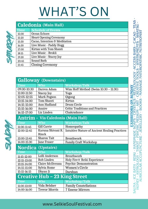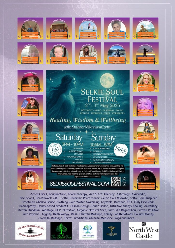 The Selkie Soul Festival is making its inaugural step into the world on the 2nd of May and I will be leading a Pranayama breathwork workshop on the 3rd. It’s in Stranraer in Dumfries and Galloway and I’m so excited to see so many interesting workshops, speakers and practitioners bringing their special bit of magic to D&G. More details below.